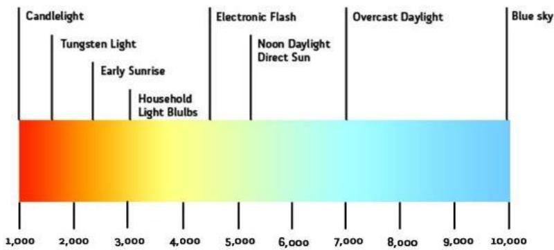 Kelvin Color Temperature Scale Fig. 6.1: Kelvin colors temperature scale.[12]