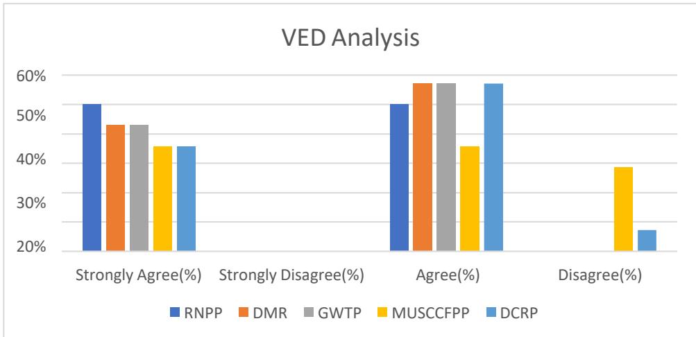 Now I will show the VED analysis practices in construction projects in Bangladesh through a graph where I consider five mega construction projects (RNPP, DMRP, GWTP, DCRP, MUSCCFPP) in Bangladesh.