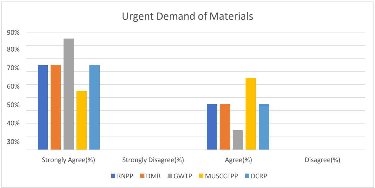 From the questionnaire survey in those five projects, we found that almost all projects have challenges in effective materials requirement schedule where the projects GWTP, RNPP, and DCRP have to face most challenges for the lack of estimating and scheduling the project in proper time.