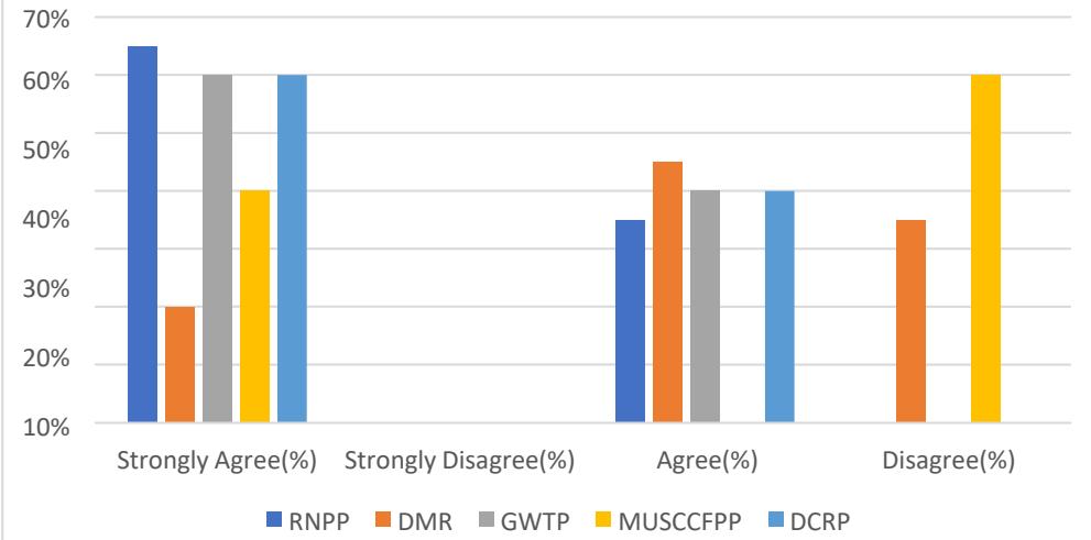 From the questionnaire survey in those five projects, we found that almost all projects have practices of this tool where the project RNPP has maximum practices (50%) and DCRP and MUSCCFPP have comparatively fewer practices (36%) of this tool.