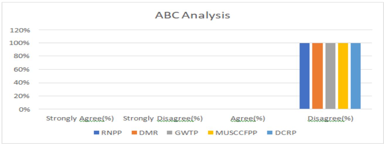 Now I will show the ABC analysis practices in construction projects in Bangladesh through a graph where I consider five mega construction projects (RNPP, DMRP, GWTP, DCRP, MUSCCFPP) in Bangladesh.