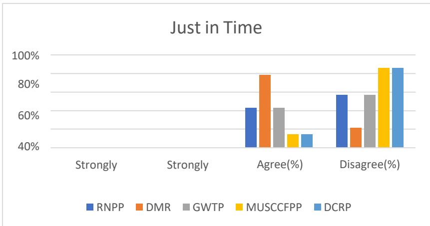 Now I will show the Just in Time practices in construction projects in Bangladesh through a graph where I consider five mega construction projects (RNPP, DMRP, GWTP, DCRP, MUSCCFPP) in Bangladesh.