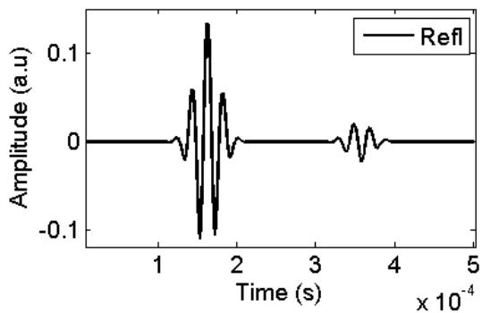 In the time domain, the reflected signal $p_{sim}^{r}(x,t)$ is obtained by taking the inverse Fourier transform of Eq. (5):