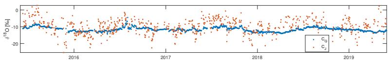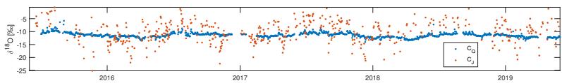 In the present study, a four-years time series (June 2015-May 2019) of daily stable water isotope data in stream water and precipitation is used for the analysis of seasonal variations. The data set is described by Von Freyberg et al. (2022), who provided detailed information on the precipitation and