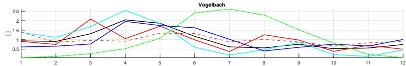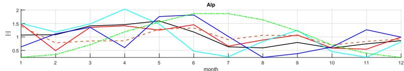 Figure 11: Added monthly Pardé coefficients (1: January - 12: December) of event water
