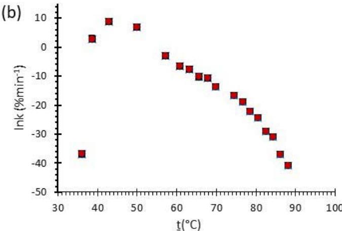 Where T represents the absolute temperature value in K, Ea represents the energy barer to release water by the DHG, and R = 8.314 J mol $^{-1}$ K $^{-1}$ is the universal gas constant. Equation (2) is the starting point for various differential kinetic methods and applies to any reaction type.