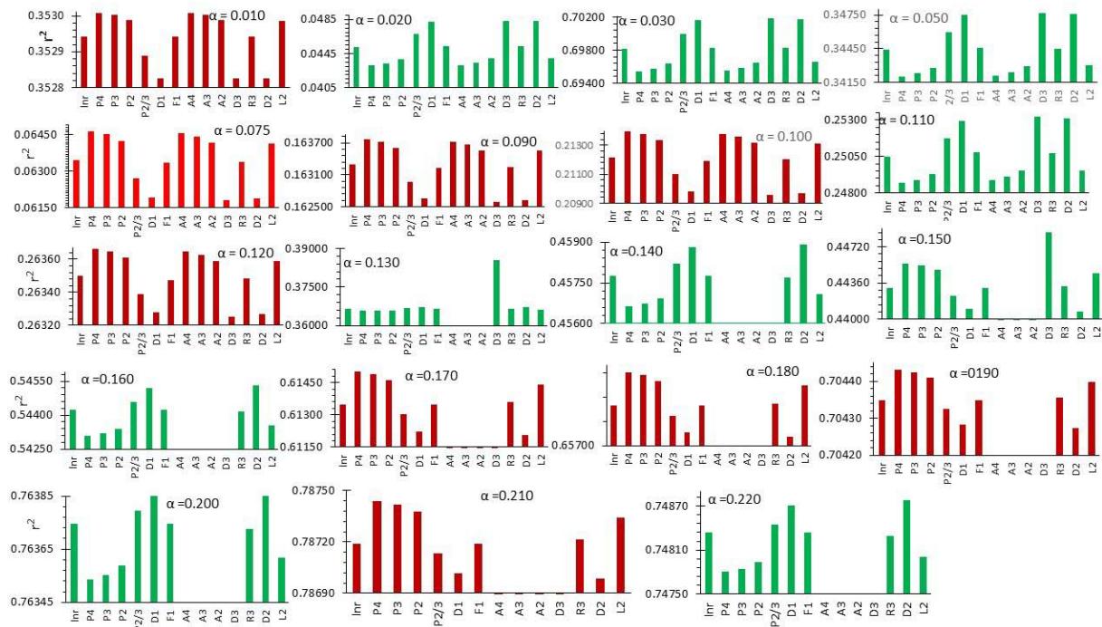 Fig. 7: Variations of the Values of r2 According to f $(\alpha)$ Models Enlisted in Table1.