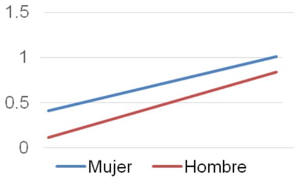 <table><tr><td>Sexo</td><td>Comunicación</td><td>Matemáticas</td></tr><tr><td>Mujer</td><td>0.6014126</td><td>0.811831</td></tr><tr><td>Hombre</td><td>0.7193645</td><td>0.6689919</td></tr></table>