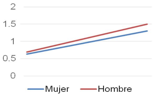 Comunicación y de Matemáticas tienden a presentar una mayor ganancia educativa que las mujeres, siendo significante estadísticamente esta diferencia (figura 35 y 36; tabla 6). Esta situación hace que se cierre la brecha por sexo en el área de Comunicación, aunque sigue siendo mayor el nivel de logro de las mujeres.