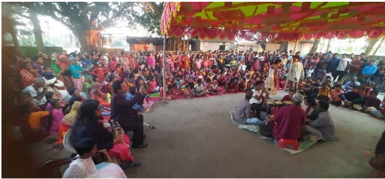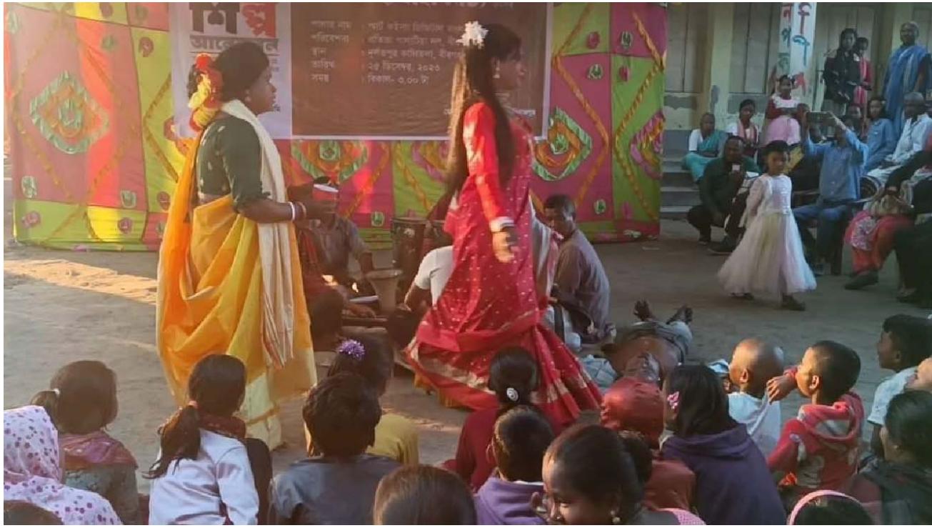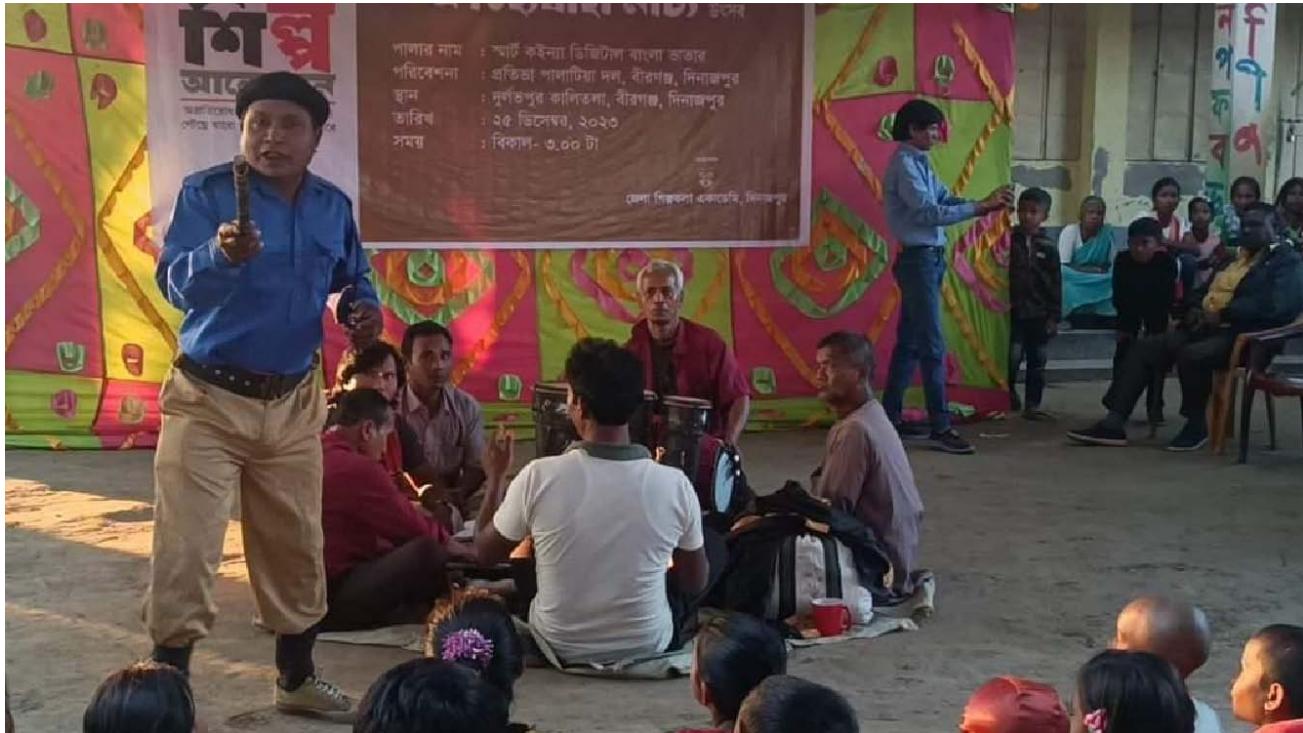 Photo 2: Lalon, informing the importance of reading book as well as education, Smart Koinna Digital Bangla Bhatar, 25 of December 2023, Dinajpur, Bangladesh Photo 3: People of all ages are gathered in an ordinary place in order to enjoy Palatiya show, Smart Koinna Digital Bangla Bhatar, December 25, 2023, in Dinajpur, Bangladesh 20