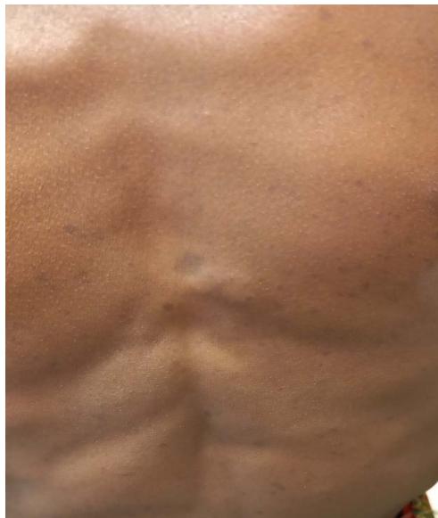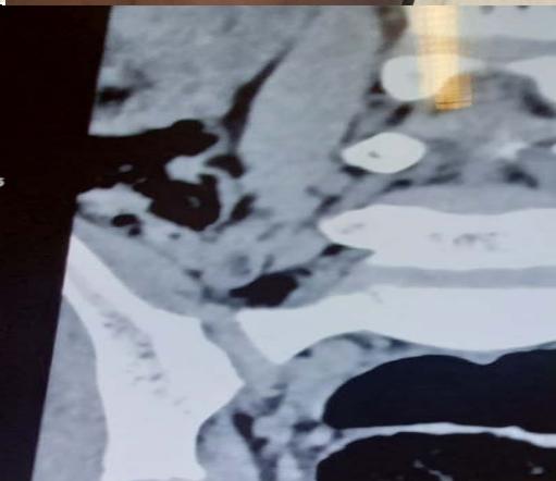 Our patient did not have the financial means to carry out this imaging from which we contented ourselves with the lumbar scanner and on the basis of the anamnestic elements to establish the diagnosis. Treatment is based on surgical removal of the tumour;