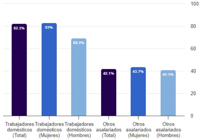 Porcentaje de trabajoadores domesticos enemploi informales en comparación con otros asaláridos, por sexo Source: ILO - National Household Survey (2019)