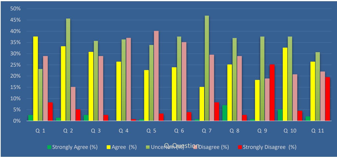 The above figure-1 shows that Responses Percentage of Participants in terms of opinion for every question.