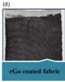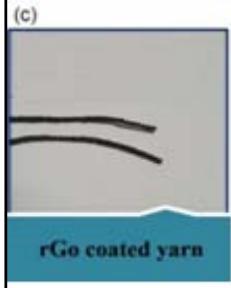 c) Reduced Graphene Oxide (rGO)- Coated yarn. d) rGO-Coated Fabric.[1]