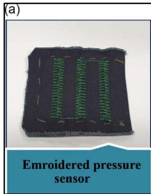 Figure 3: a) Conductive thread-based Embroidered Pressure Sensor.