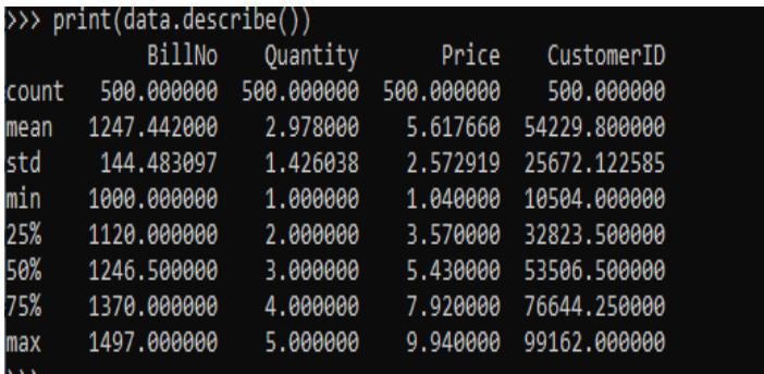 Figure 3 above shows the Statistical results of dataset.