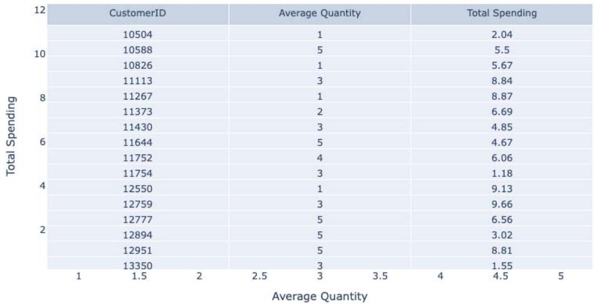 By the term customer behavior, we understand the trends in the buying habits and factors which influence the decision to buy something else along with previous item. Here in Figure 7 above we explore customer behavior by comparing average quantity and total spending. Customer Behavior Analysis represents the study of how people make buying decisions concerning a product, service, and/or organization.[9]