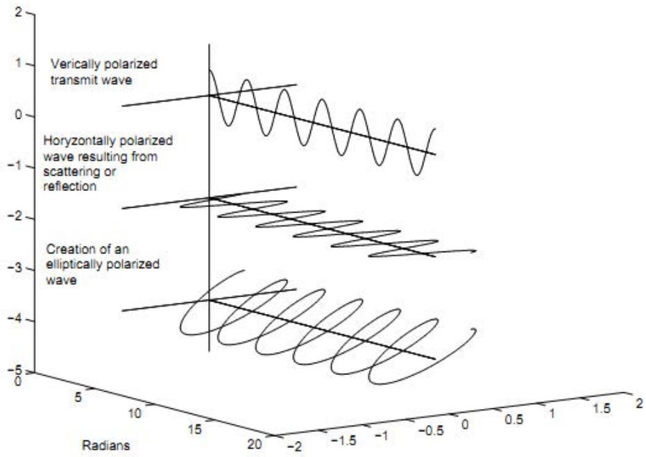 Where $E_x$ is the horizontally polarized component of the receive signal, $E_y$ is the vertically polarized component of the receive signal. When $\Delta \theta = \frac{\pi}{2} + 2k\pi$, $k = 0,1,2,\ldots$, and $E_{0x} = E_{0y} = E_0$ then equation 1 becomes