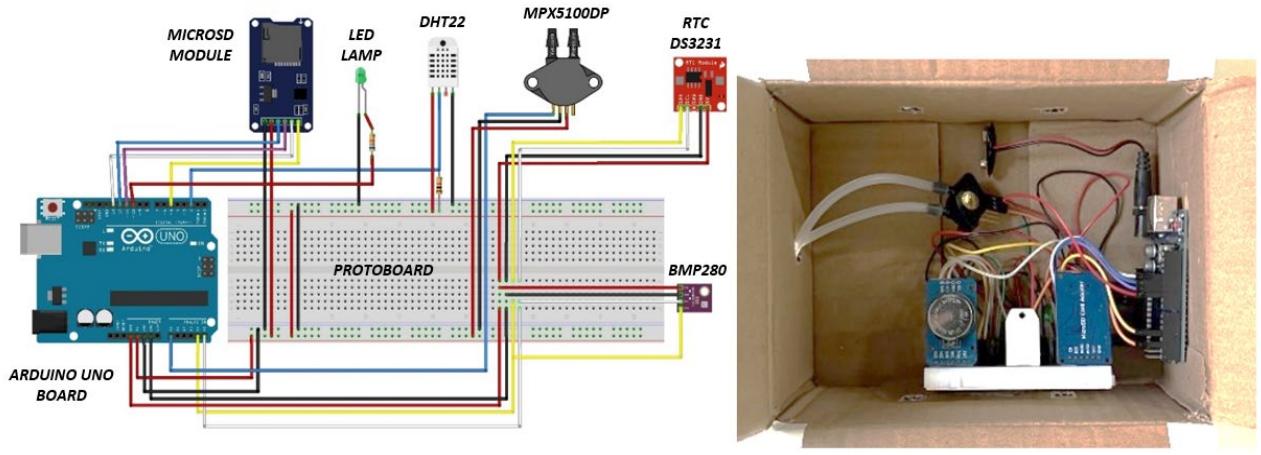 Atmospheric natural disasters can have their damage mitigated if meteorological alerts are disseminated on time. Among the ways to get data related to weather conditions are the use of atmospheric profilers and numerical models. Such resources can be used for studies related to the surface layer, which covers a range from 20 to 200 meters below the low troposphere. In order to make atmospheric experiments achievable, without great financial expenditure, a low-cost atmospheric profiler was developed together with the Laboratory of Monitoring and Numerical Modeling of Climate Systems (LAMMOC) of the Federal Fluminense University (UFF), to be on board a drone and based on prototyping with Arduino, which had as sensors the DHT22 for measuring temperature and relative humidity and the BMP280 for measuring atmospheric pressure.