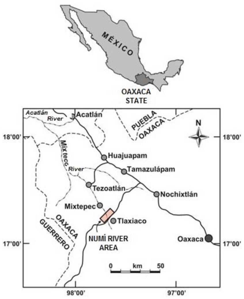 Figure 1: Localization Map of the Numí River area, close to Tlaxiaco, Oaxaca