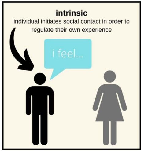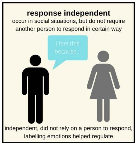 context of live social interaction and representing the pursuit of a regulatory goal. Under interpersonal interactions, there are two categories of emotions, intrinsic and extrinsic, and response independent and response-dependent. I have created a diagram below to illustrate each type.