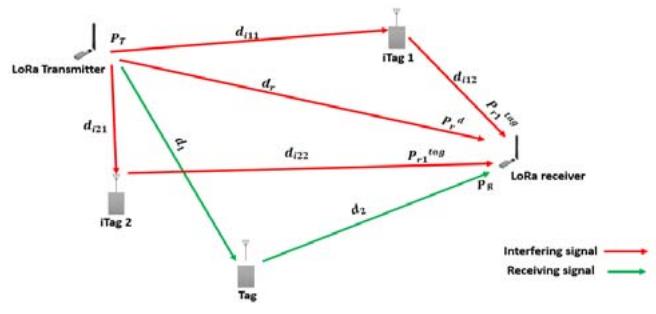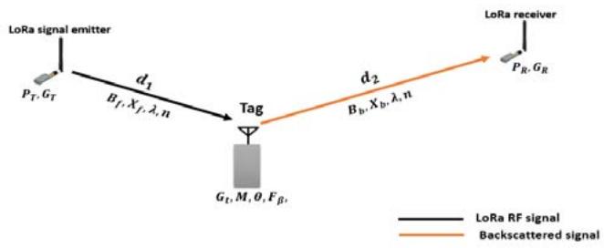 In this subsection, a brief description of each parameter involved in radio propagation between the LoRa transmitter-to tag and tag-to-receiver is presented.