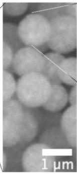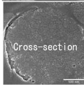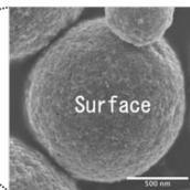 Fig. 4: Surface and cross-sectional morphology of agglomerated TWC-particles