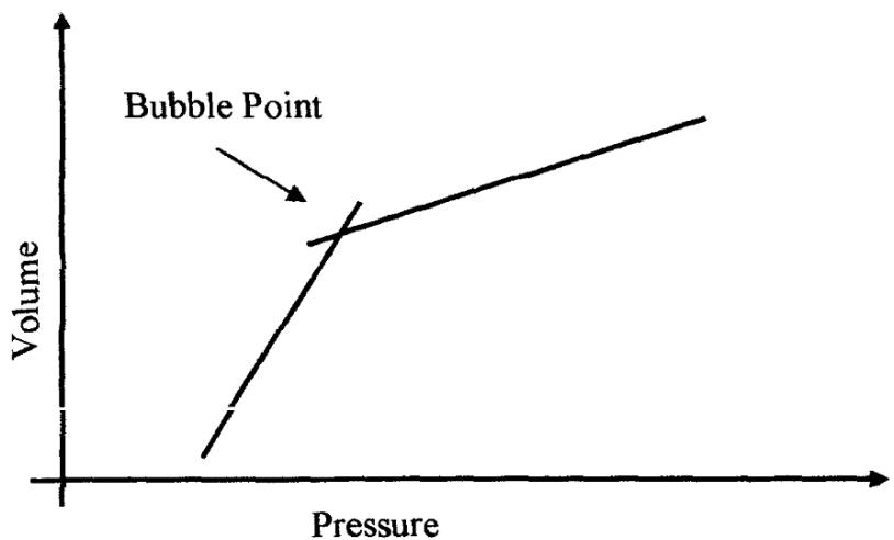 $\mathsf{P_b}$ the gas is increasing coming out of solutions as well the free phase expands, but oil is shrinking in volume, the formation volume factor $(\mathsf{B_o})$ suppose to be unity at standard conditions of 0 psig and $60^{\circ}\mathrm{F}$, above $\mathsf{P_b}$ the understatuated region the formation volume factor $(\mathsf{B_o})$ increases as the oil compressibility $(\mathsf{C_o})$ decreases until below the $\mathsf{P_b}$ where it decreases as the $(\mathsf{C_o})$ increases (Egbogah, 1981).