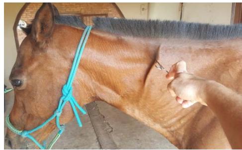 Fig. 5: Image showing complete skin hypoesthesia/ anesthesia in a horse with a non-congenital cervical problem