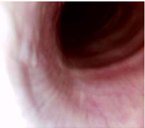 Fig. 4: Videoendoscopy Image Showing Increased Space between the Tracheal Rings of a Horse with Cervical Problems, Non-Congenital Problems (Bule Arrow)