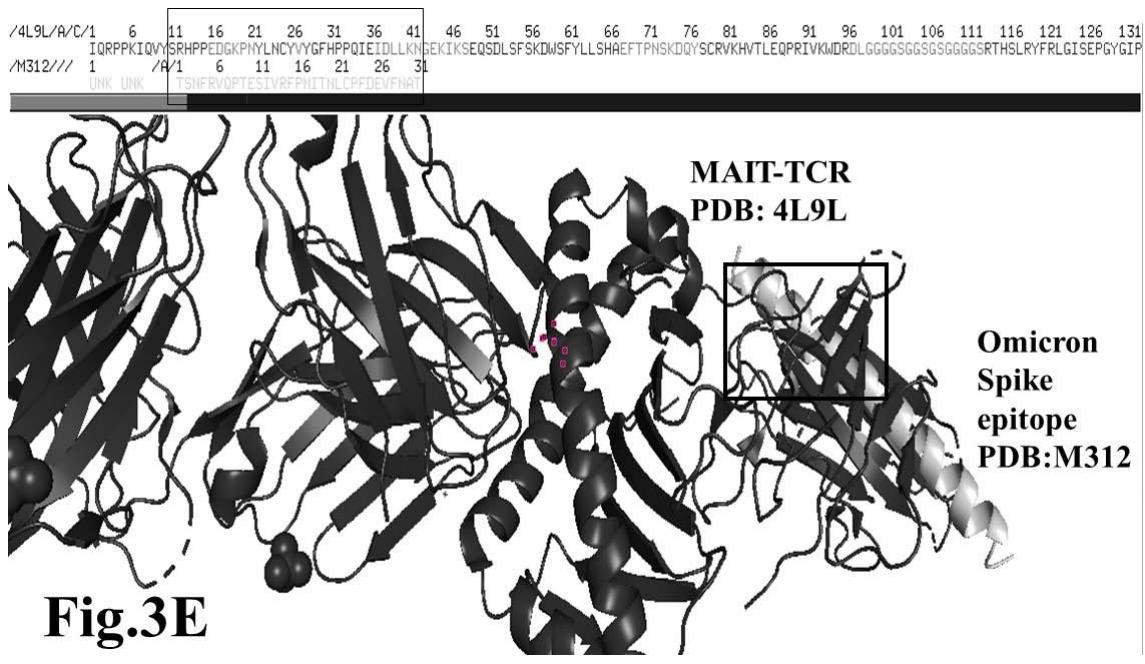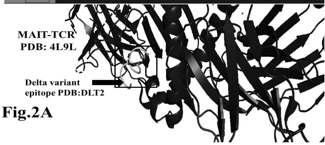 DRB1*15:01. These HLA-DRB1 allele recognized viral epitopes are checked for their efficacy for CD4 and TCR recognition. Here, we presented recognition ability of mucosa-associated invariant T cell receptor (MAIT-TCR) to the selected epitopes derived from Spike envelop protein sequences of SARS-COV2, Delta and Omicron variants.