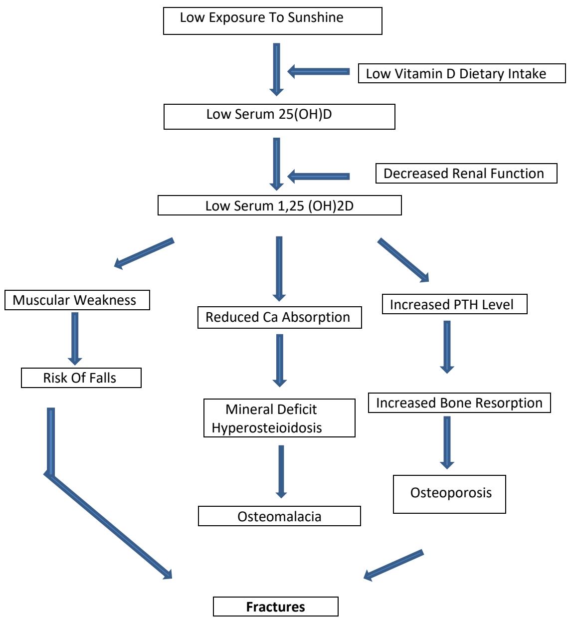 Background: Hypovitaminosis D is commonly prevalent in older population world over leading to increased levels of bone resorption, reduced bone mass, often resulting inosteoporosis and increased chances of falls and fractures. In children, vitamin D deficiency is known to cause rickets due to hypomineralization of bone.