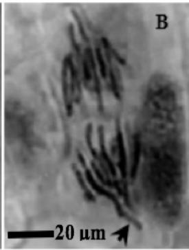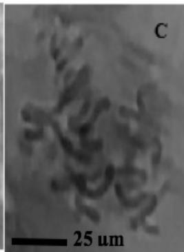 Meristematic root tips were obtained from the roots used for the measurement of lengths. The squashes method was prepared as suggested by [11] using $2\%$ aceto-orcein. The chromosome smears thereof were used to determine the Mitotic Index (MI) and the presence of Chromosomal Aberrations (CA) induced by the aqueous extracts of the roots of C. melo. Five replicates were performed for each treatment, and scoring was done from the ten sources of each replicate. A minimum of 200 mitotic cells were counted from each slide. Mitotic indices (MI) were calculated for each treatment according to the formula: Number of dividing cells/Total number of cells observed $\times 100$. Chromosomal abnormalities were scored in the mitotic cells, and the results are shown in the tables and figures, while the most frequent chromosomal abnormalities are shown in photomicrographs.
