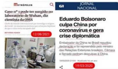 Amidst the whirlwind of information concerning the COVID-19 pandemic, the collective imaginary, represented by the virtual communities and profiles on the internet's social networks, ideologically identified with right-wing parties and politicians and with Christian-related values, and typically advocates of the former Brazilian president, Jair Bolsonaro, and of the former United States president, Donald Trump[^5][^4],[^3] has been disseminating, without any hesitation, conspiracy theories that claim the thesis of a plot between China,