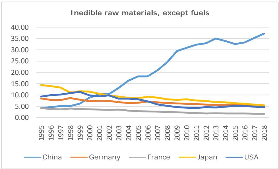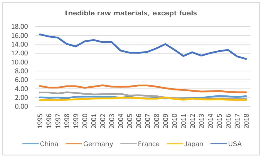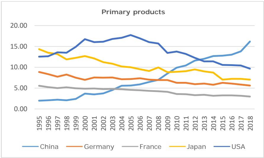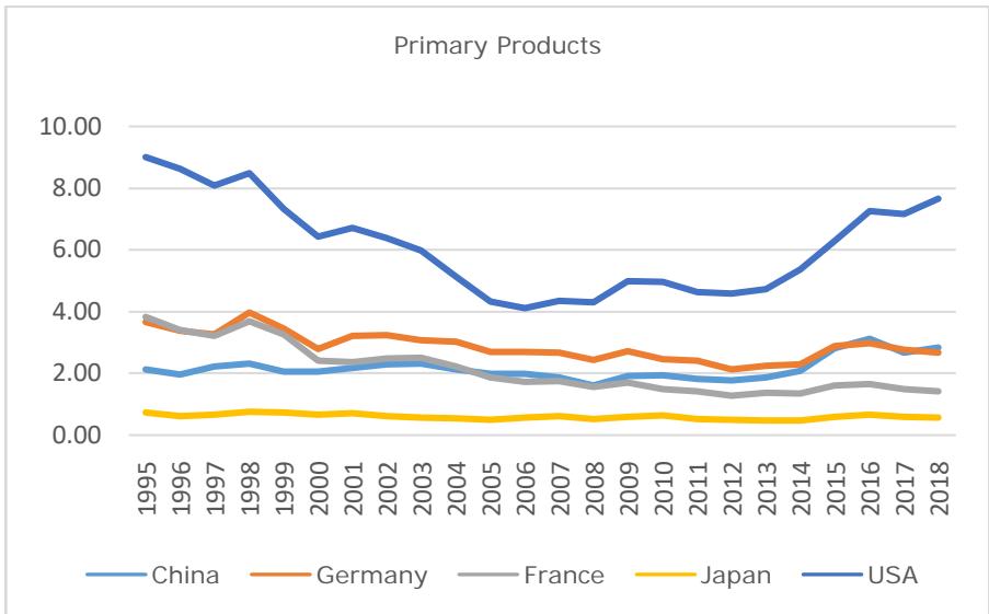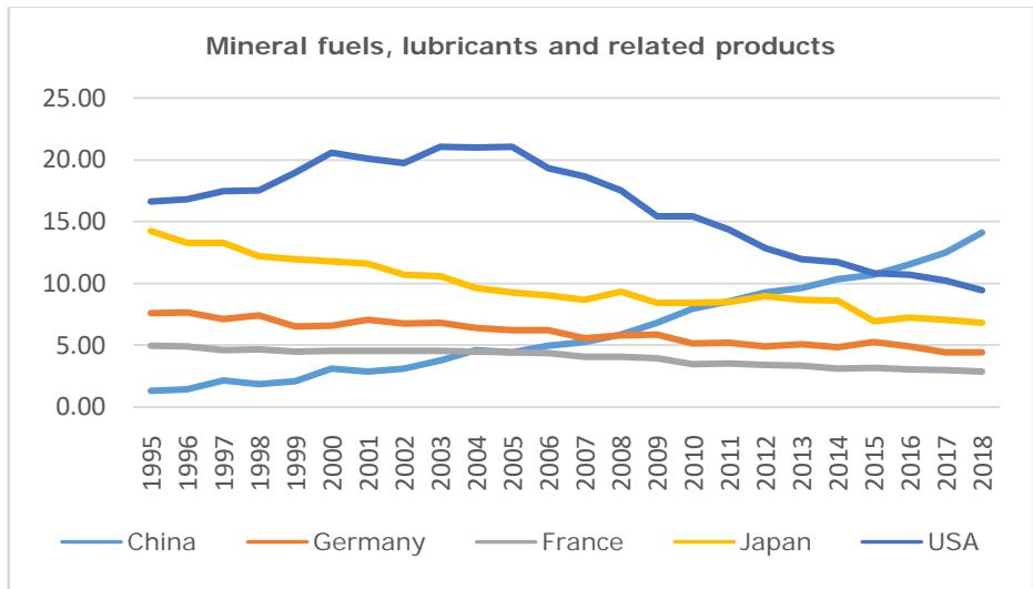 Source: UNCTAD data and author's calculations Figure 6: Evolution of the Import Profile of China, the USA, Japan, France and Germany over the Period 1995-2018