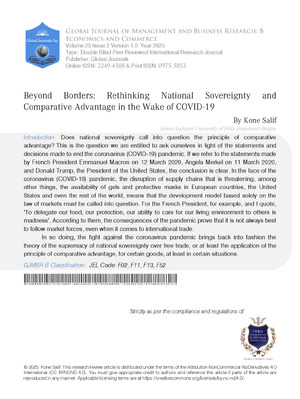 Dr. Kone Salif. 2026. \u201cBeyond Borders: Rethinking National Sovereignty and Comparative Advantage in the Wake of COVID-19\u201d. Global Journal of Management and Business Research - B: Economic & Commerce GJMBR-B Volume 25 (GJMBR Volume 25 Issue B2): .