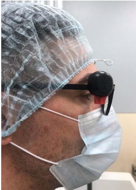 1) in the orbits and under the surgical magnifying glass, in maximum proximity to the eye (fixed on the bracket), figure 1;