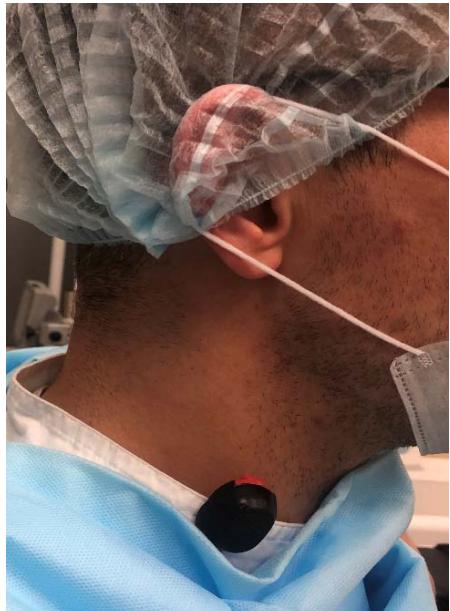 To evaluate the received doses of ionizing radiation of surgeons during surgery, the ID was placed on the surgeon:
