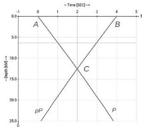 Let us segment $(A,C)$ or $(B,C)$ are the generalized characteristics: point $A$ will be an origin time of phase $P$; point $B$ will be an origin time of phase $pP$. Point $C$ is a place of crossing of both characteristics.