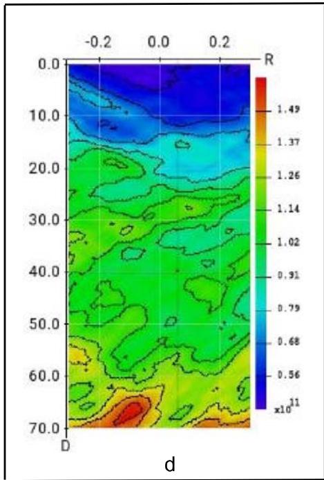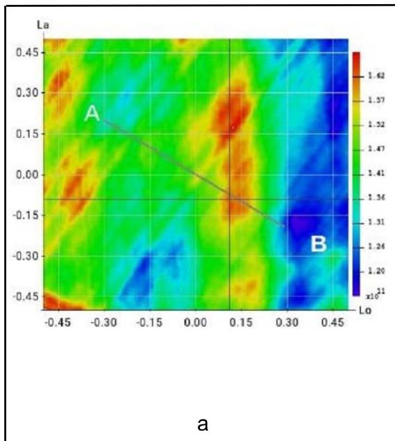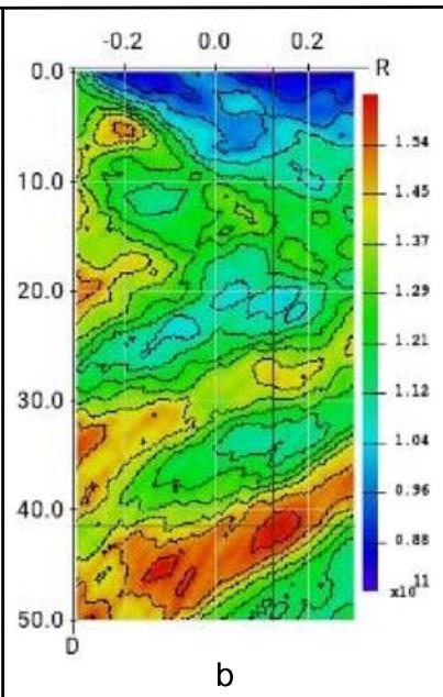 Moreover, we can trace several seconds of seismic activity before origin time on the vertical slices in coordinates $(R,h)$ in backward time perspective.. Axis $R$ is a segment of arc on the surface (line $(A,B)$ on map Fig.11. a), the $R$ unit is arc degree. Axis $h$ is depth in km. All what shows on Fig. 11 for demonstration only. It pays attention that all vertical slices correspond to times before zero time on graph Fig. 11.b. This picture series shows the rising of the seismic activity in the origin vicinity from mantle to up.