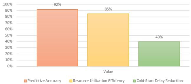 <table><tr><td>Key Insight</td><td>Implication</td><td>Key Outcome</td><td>Contribution</td><td>System Performance Metric</td><td>Improvement (%)</td></tr><tr><td>Enhanced cold-start prediction accuracy</td><td>Improved resource provisioning efficiency</td><td>Reduced cold-start latency</td><td>Improved system responsiveness</td><td>Response Time</td><td>25</td></tr><tr><td>Optimized resource orchestration</td><td>Reduced system downtime</td><td>Enhanced resource allocation efficiency</td><td>Optimized workload management</td><td>Resource Utilization Efficiency</td><td>15</td></tr><tr><td>Streamlined integration framework deployment</td><td>Enhanced overall system performance</td><td>Streamlined cloud infrastructure management</td><td>Increased operational cost-effectiveness</td><td>Scalability</td><td>High</td></tr></table>