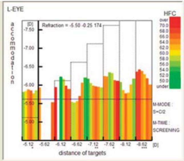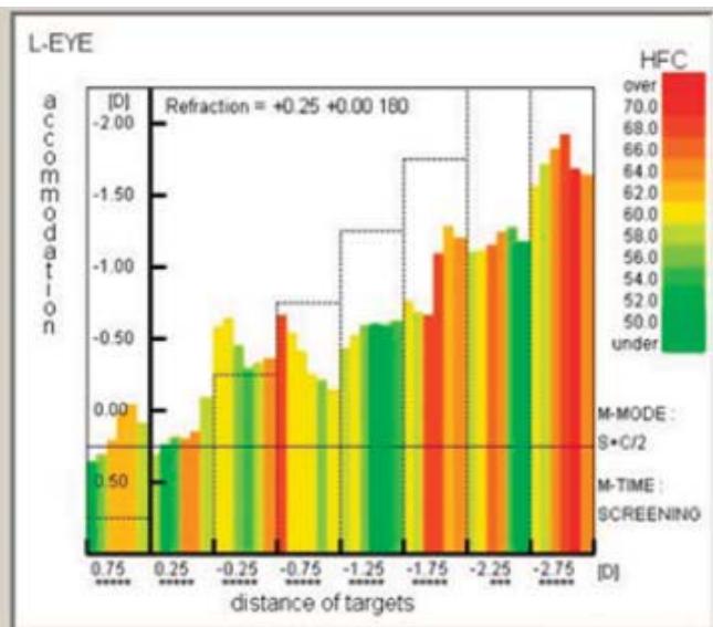Fig. 3: Accomodogram of a child with moderate myopia. Autorefractometer Righton Speedy-K ver. MF-1
