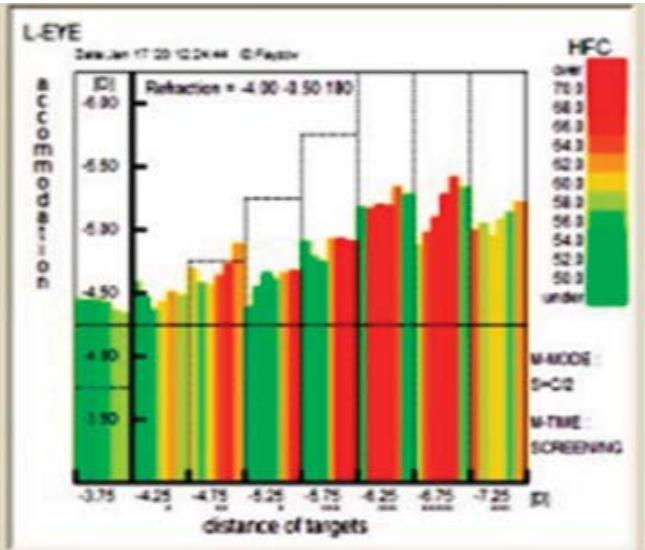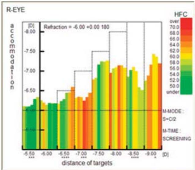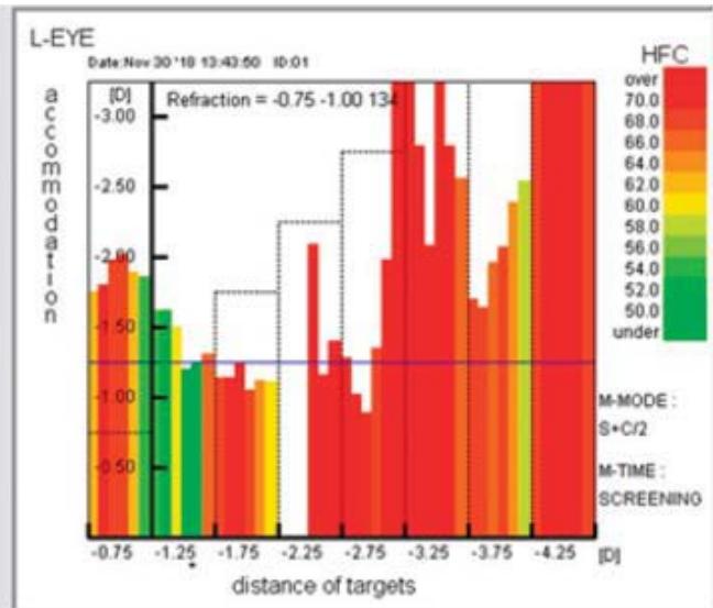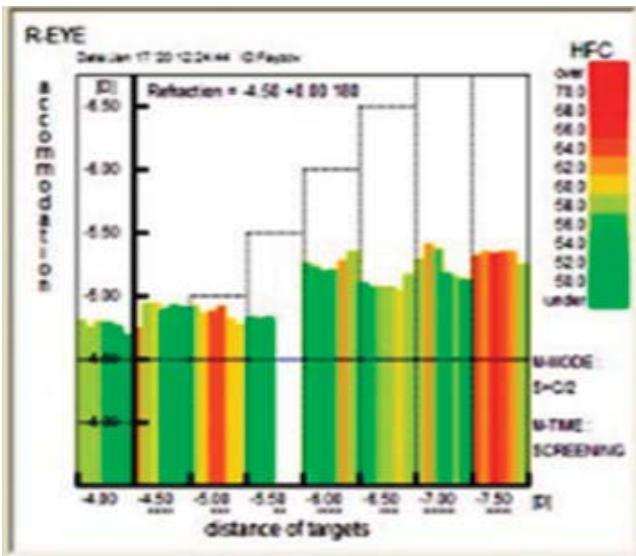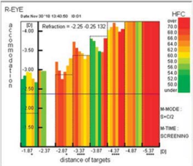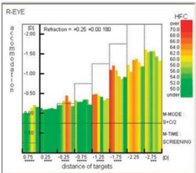 Fig. 4: Accomodogram of a child with high myopia. Autorefractometer Righton Speedy-K ver. MF-1