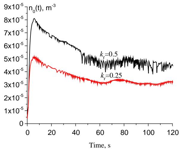 Figure 7: Time dependences of the density of neutral particles in the volume surrounding the plasma