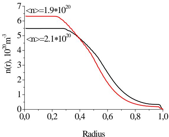 Figure 8: Spatial distributions of plasma density at two mean values