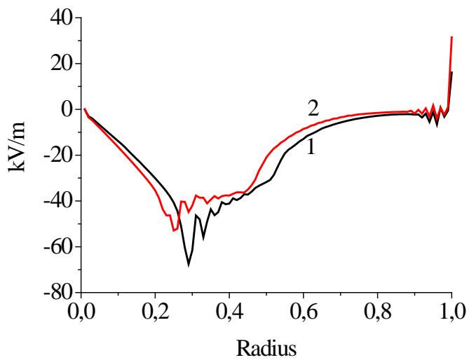 Figure 10: Spatial distributions of the ambipolar electric field at average values of the plasma Density