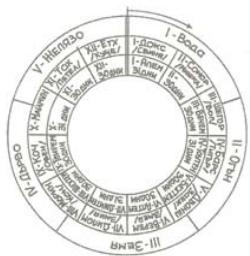 world (I CHING, 1996). The ancients assumed that all phenomena in the Universe stem from the law of energy change. It distinguishes "five rotations/elements" (Fig. 2) ("water"; "fire"; "earth"; "wood"; "metal"). The "five rotations" are degrees of qualitative changes in energy that depend on the change of the "five elements." After the completion of each cycle, there is a new genesis. The term "rotation" speaks of the cyclical nature of the changes. The calendar is made up of 10 "heavenly trunks" and 12 "earthly branches" (Madzharov et al., 2002). The ten "trunks" are characterized by the turning of positive beginnings into negative ones and vice versa: odd "trunks" are positive (with an excess), and even ones are negative (with a shortage of a given energy). The "trunks" characterize the heavenly energy, whereas the "branches" - the earthly. The ten "heavenly trunks" (Fig. 2) are combined with the twelve "earthly branches" (Fig. 3) in a 60-year cycle (Madzharov et al., 2002). Depending on the complete rotation of the axis of the Earth in space, a period of 20160 years can be covered (Valchev, 1986). There is an impressive coincidence of the boundary year between two decades with the change in the rhythm of fodder mass formation during the studied period (Mitev, 2020). Our notion of the essence of Nature gives birth to the idea to start a research program to predict and model the behavior of crops. In this way, there is an opportunity to touch the knowledge of the ancient Bulgarians. Gradually, one comes to the classic question of what is primary in Nature. The answer could be found 2000 year ago in the Gospel according to John (1:1): "In the beginning was the Word (the information); And the word was with God; and the Word was God" (Bible, 2001). There are some exciting arguments of Borza and Coste (2002) (cited by Bostan et al. (2012) that the interactions among plants can be achieved at least in three aspects: substantial, energy, and informational. The most important aspect seems to be significant for two reasons: 1) because substances in the developing interaction can provide energy and information; 2) because in any case, at a particular moment of information impact, each signal is transformed into a changed molecular structure of life. There is an energy information impact of DNA (deoxyribonucleic acid) on the status of higher organisms (Gariaev, 1997). It is believed that the strength of energy information fields exceeds that of the genetic code (Lazarev, 1996). When Information passes into matter gives birth to energy in a broader sense. Energy becomes a substance that seeks to accumulate energy and information. All this is within a natural cyclic sequence (Lazarev, 1997). Information, respectively, in a little different aspect as an enigma is neither a matter, nor energy, but it's a bearer of matter and energy. On a larger scale, it is a quantum elativus self-bearer of matter and energy (Mateev, 2004).