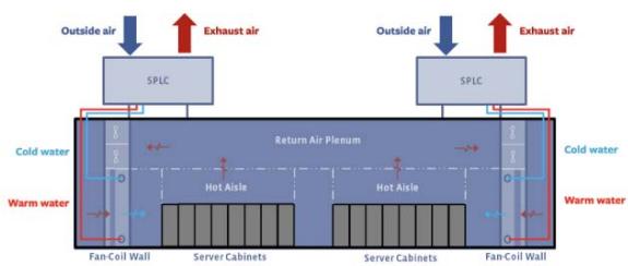 State Point Liquid Cooling (SPLC): SPLC users are patented cooling systems from Nortek to the meta data centers cooling system which is an advanced evaporating cooling system. This eliminates mechanical cooling in the data center making their environmental contribution on pollution redundant while also having flexibility in data center design as their data center in Singapore have not taken up too much space. Therefore, there is room for expansion. It is said that in [28] [29], the PUE at the Meta data center is at 1.19 making it energy efficient. This would mean that when