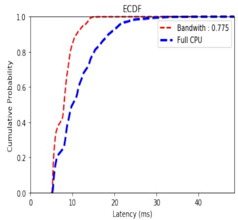 Fig. 5: ECDF Latency Distribution Partial CPU (0.775) vs. Full CPU RTDS Scheduler