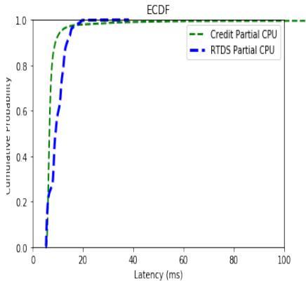 Fig. 8: ECDF Latency Distribution Partial CPU Credit vs. Partial CPU RTDS
